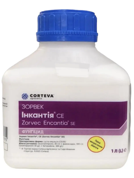 Механізм дії фунгіциду Зорвек Інкантія: Зорвек Інкантія має абсолютно новий біохімічний механізм дії на збудників хвороби та не має перехресної резистентності з існуючими фунгіцидами. Крім того, Зорвек призводить до різнобічного впливу на життєвий цикл патогенів, що забезпечує кращу ефективність і тривалість дії. Зорвек захищає оброблене листя, що росте і збільшується в розмірах, включаючи листя розміром менше 20% від свого остаточного розміру в момент нанесення.